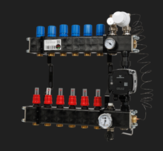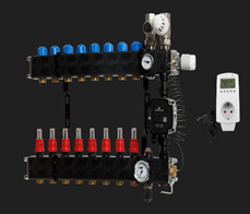 De regelunit is het hart van de vloerverwarming. Hiermee wordt de temperatuur in de vloerverwarming geregeld. De regelunit wordt aangesloten op de bestaande verwarmingsinstallatie. Bij een installatie op stadsverwarming wordt een aangepaste regelunit geïnstalleerd.